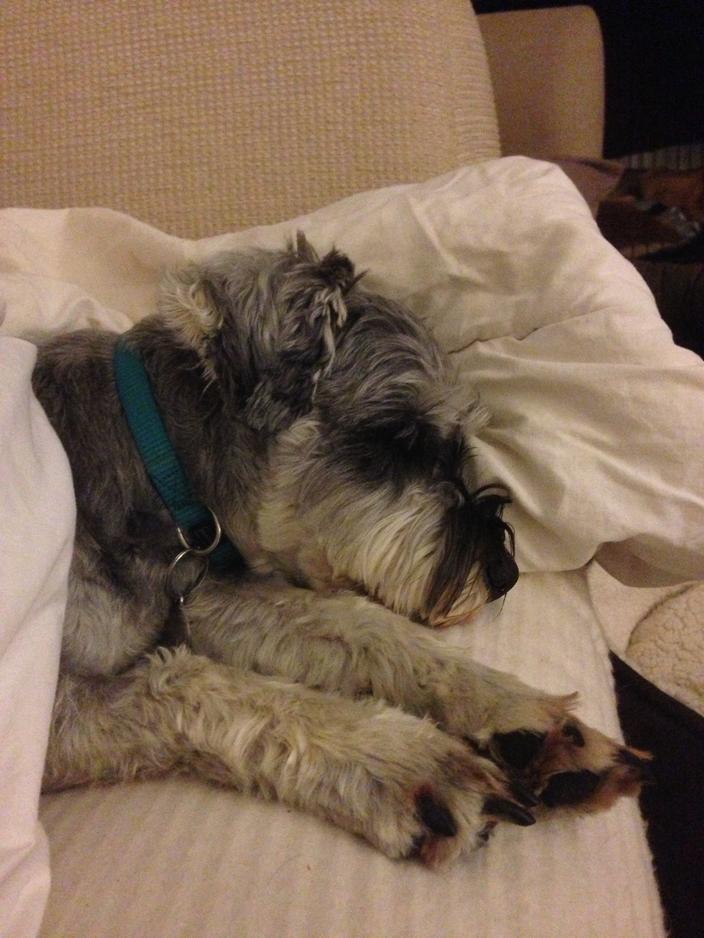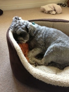 He’s not yet back to his old self, but compared to the pitiful little dog we took to the emergency vet on Wednesday night, he’s miles better. We took him on a short walk yesterday evening and although he enjoyed his runabout, he abruptly ran out of steam meaning I had to carry him part of the way home. I swear I started off carrying a Mini Schnauzer and ended up with a Newfoundland by the time I reached the front door!
