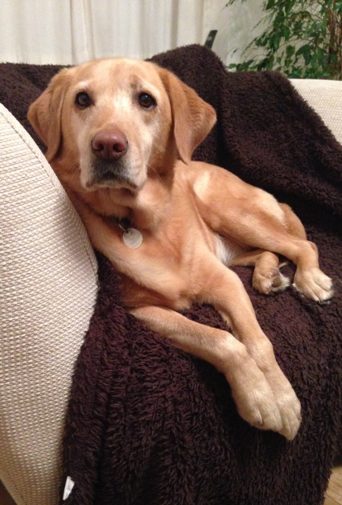 We have a new harness on order that’s soft enough for her to wear all day. It has a handle so that we can lead her out into the garden, because carrying a stubborn 28kg Lab to the toilet is really no fun for anyone, least of all her bless her.